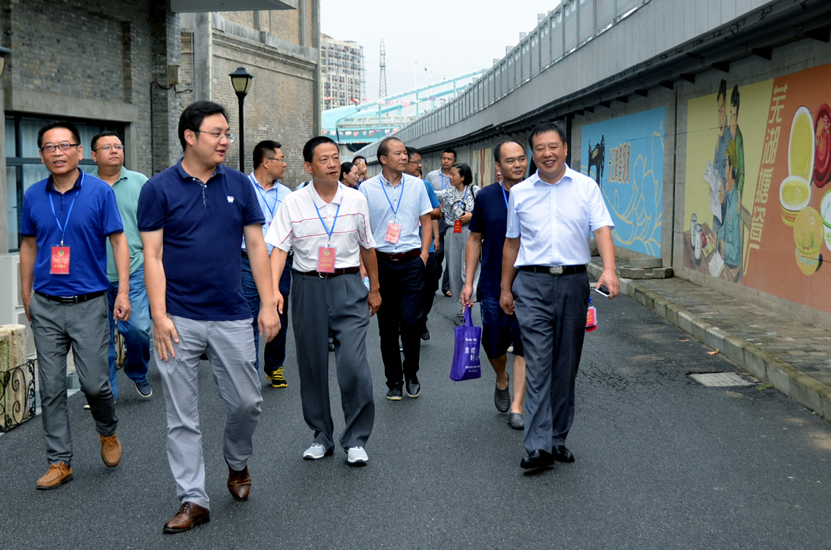 卞總向調(diào)研團匯報了園區(qū)的歷史傳承、改造歷程及目前的基本發(fā)展情況。帶領(lǐng)參觀了益新面粉大樓及大礱坊歷史文化長廊,作為蕪湖工業(yè)象征的“兩個半煙囪”的僅存見證,百年益新面粉大樓在經(jīng)過修整后也再次踏上新的征程。而在今年8月正式竣工的大礱坊歷史文化長廊,利用墻繪的方式,生動的記錄了礱的誕生以及大礱坊的工業(yè)歷史變遷,長達450米的手工墻繪,目前已成為蕪湖的一張文化名片。